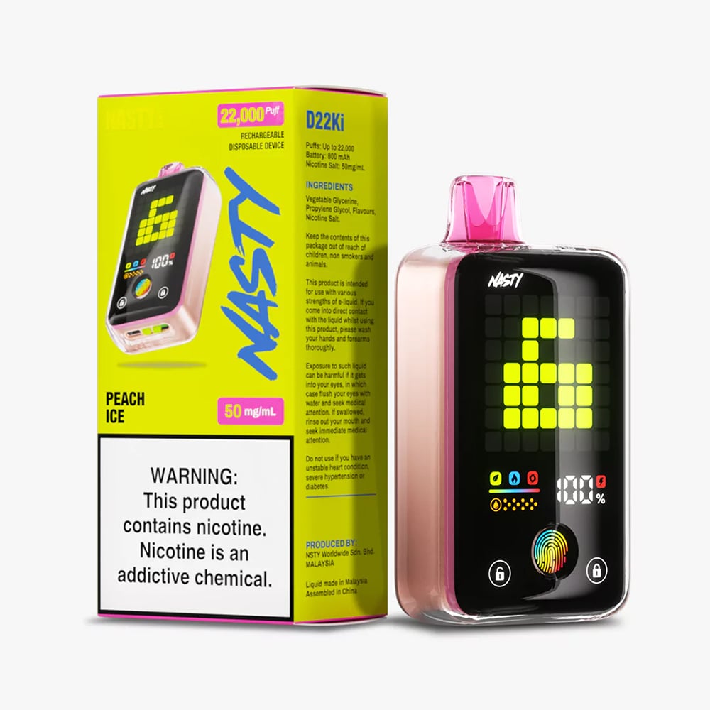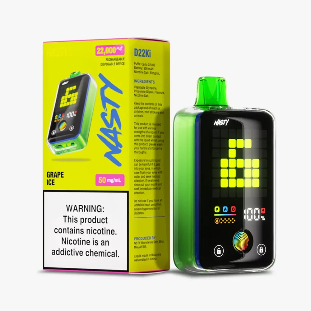 پاد Nasty D22Ki با طراحی مدرن و مینیمال، حس لوکس بودن را در کنار راحتی استفاده به کاربر منتقل می‌کند. بدنه مقاوم، نمایشگر وضعیت باتری، سیستم کشش خودکار بدون دکمه، و درگاه شارژ سریع Type-C از ویژگی‌های برجسته آن هستند. این دستگاه با تولید بخار یکنواخت و طعم ماندگار، تجربه‌ای سطح بالا از ویپینگ ارائه می‌دهد.