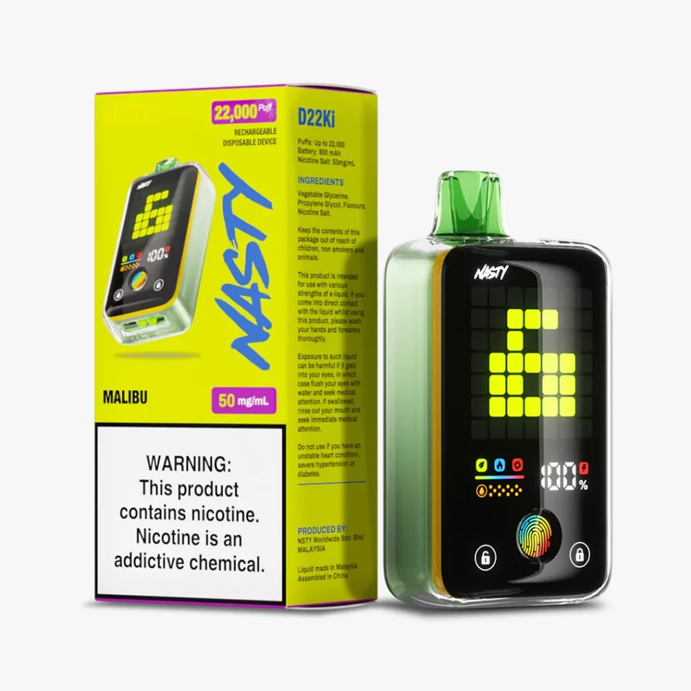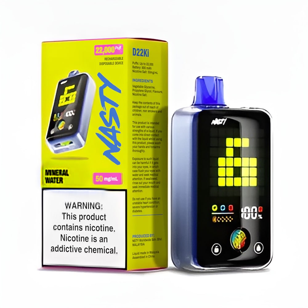 پاد یکبار مصرف Nasty Bar D22Ki یکی از جدیدترین و قدرتمندترین محصولات برند Nasty است که با ظرفیت 22,000 پاف واقعی، تجربه‌ای طولانی و لذت‌بخش از ویپینگ را ارائه می‌دهد.